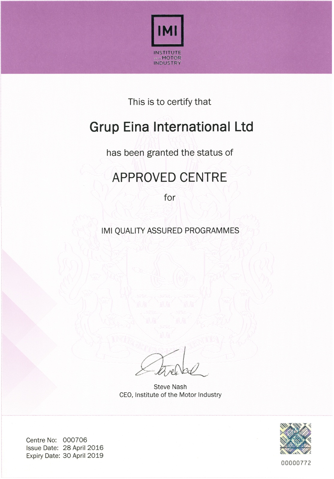 Desde su implantación en Dublín, Grup Eina es Centro Homologado IMI. Ello implica la certificación de sus materiales formativos, entre los que se encuentran los cursos online del campus Kashima University, los modelos de formación presencial, sus formadores y sus aulas y talleres de formación, así como equipo y medios didácticos.